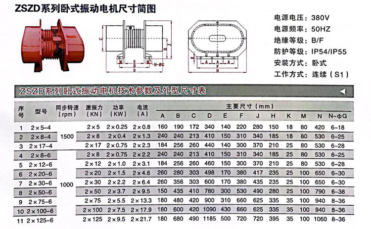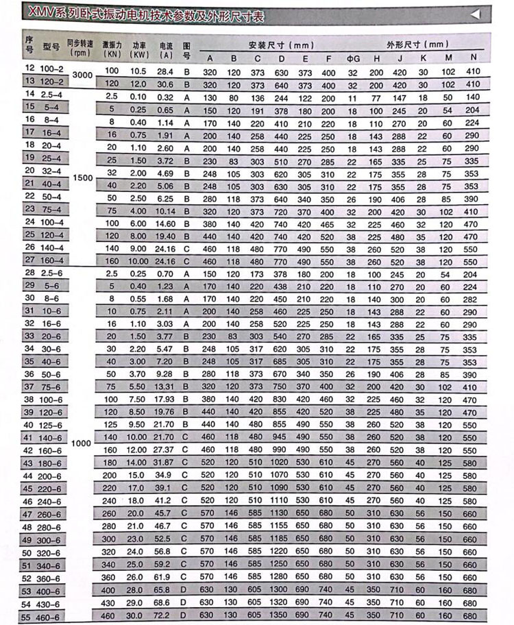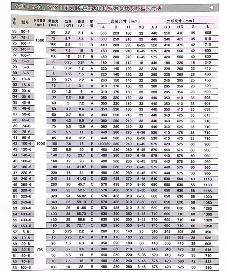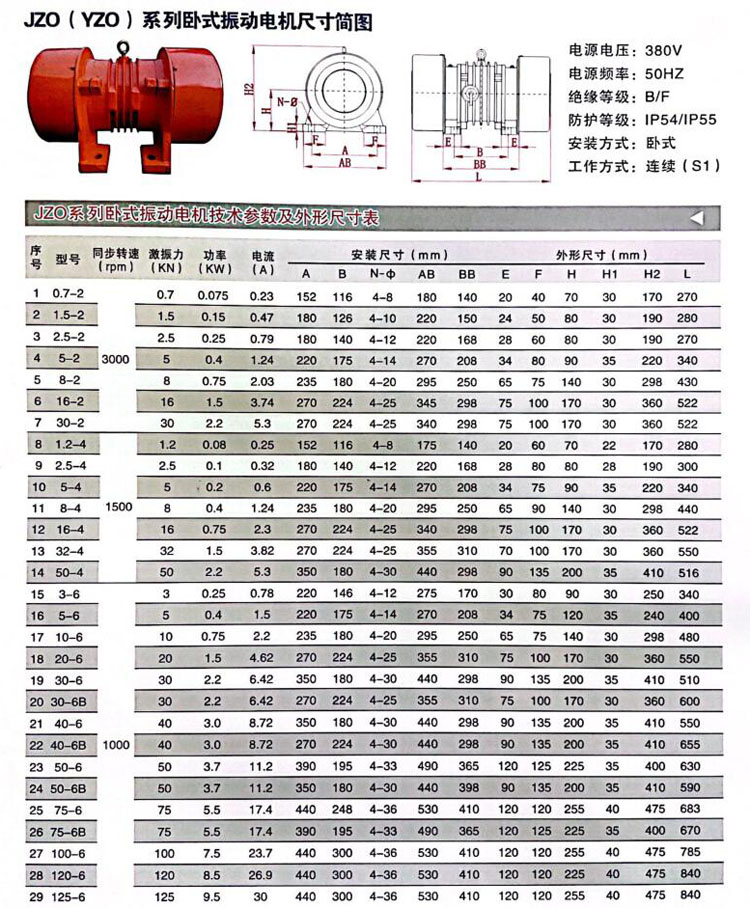 3、據(jù)適用設(shè)備選購,振動(dòng)篩、給料機(jī)和振實(shí)臺等設(shè)備,計(jì)算好電機(jī)振次和雙振幅選擇二級、四級、六級電機(jī)。