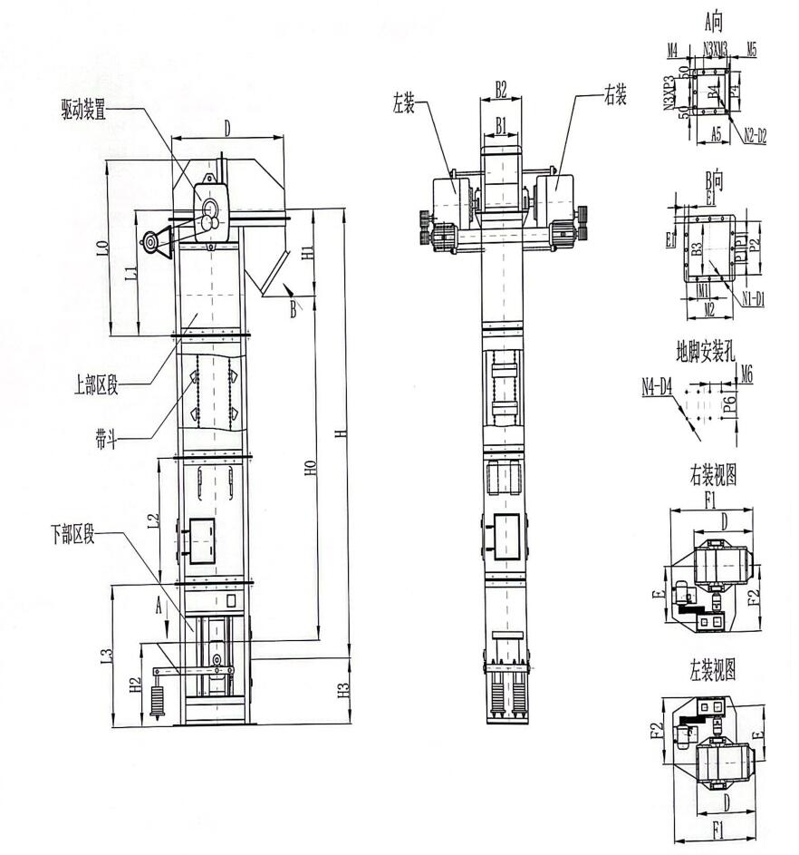 TD250斗式提升機(jī)外形結(jié)構(gòu)圖